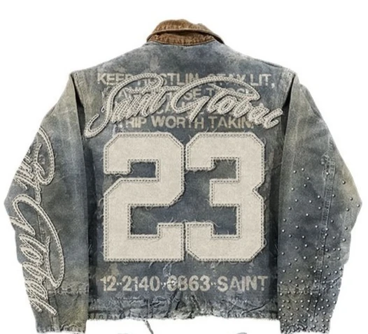 American Retro Jacket Y2K Clothes Men Women Hip Hop Letter Stitching Embroidery Washed Oversized Jackets Casual Coats Streetwear